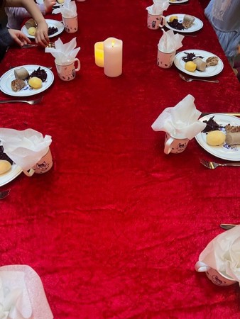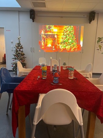 Mange flotte barn som ankom barnehagen i dag for julebord. Først var det felles julesamling på Villa Raptus med Joakim i spissen! Vi øver på flere julesanger som skal fremføres på årets luciamarkering. Etterpå var det tid for lunsj. På menyet var det norsk tradisjonell julemat; Medidterkaker, medisterpølse, rødkål, potet og brun saus. Vi koste oss masse! På kjøkkenet satt Villa Raptus på langbord med noen fra Maximus. Det var rød duk, lys på bordene og servietter i glassene. Riktig så flott!