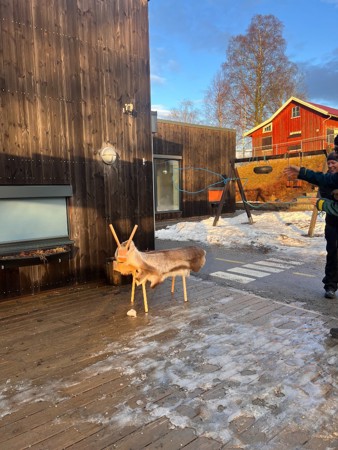I år har vi valgt å markere over to dager, med ulike aktiviteter for barna. I går var vi ute, hvor barna fikk delta i spennende aktiviteter som å kaste lasso på reinsdyr og kaste på blikkbokser. Joakim satt i lavvoen med ulike samiske redskaper og klesdrakter, og alle som ønsket fikk prøve.