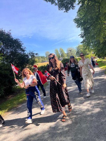 Som en hyggelig avslutning tok vi årets personalbilde, der temaet denne gangen var 17. mai. Det var en fantastisk syn da vi masjerte gjennom campus på jakt etter det perfekte location! Noen i finstasen, noen i bunad, tre russ og sannelig kom ikke dronning Sonja og kong Harald også;)