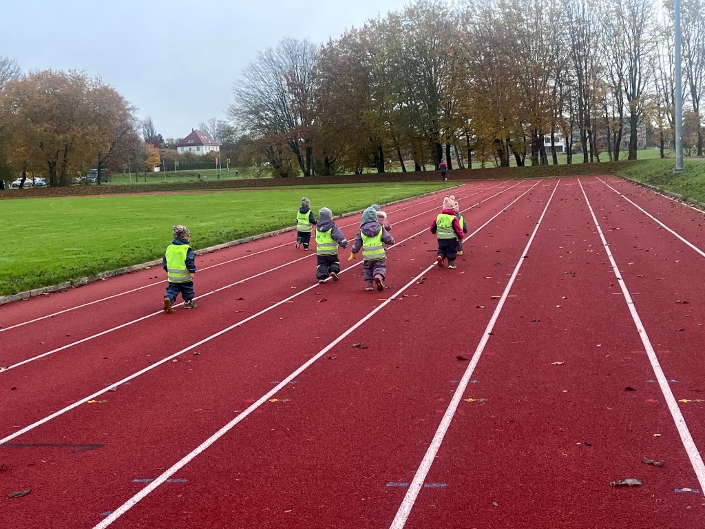 En avdeling løp omgangen, mens de to andre heiet og flagget! Det var mange stolte barn (og voksne) som ble heiet frem på løpebanen.