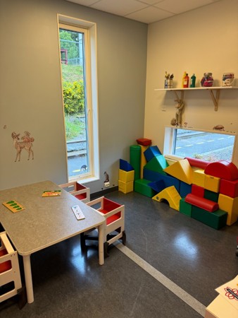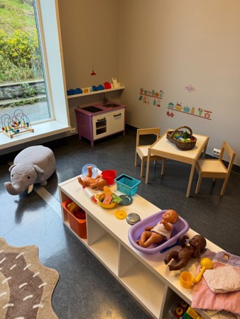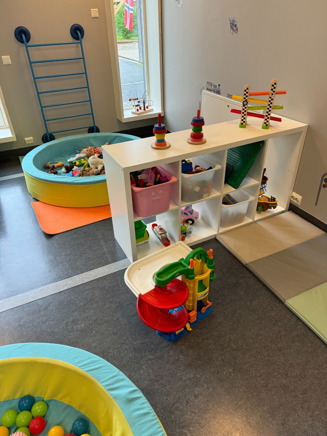Vi ønsker å bruke det fysiske miljøet på avdelingen som «den tredje pedagog» - med det mener vi at rommet jobber med oss, og ikke mot oss. Vi legger til rette for gode møteplasser for barna, og miljøet er hele tiden i endring ut fra barnas behov og interesser. Vi deler i mindre grupper, så vi lettere kan se hvert enkelt barn og møte dem der de er.